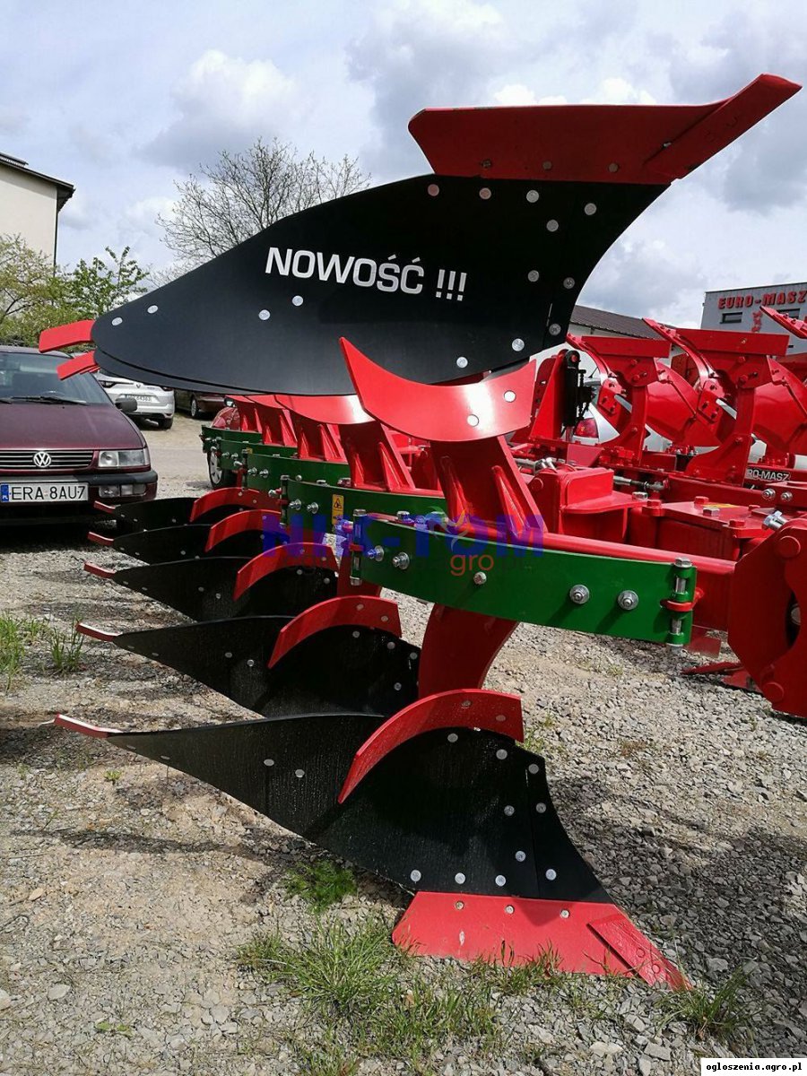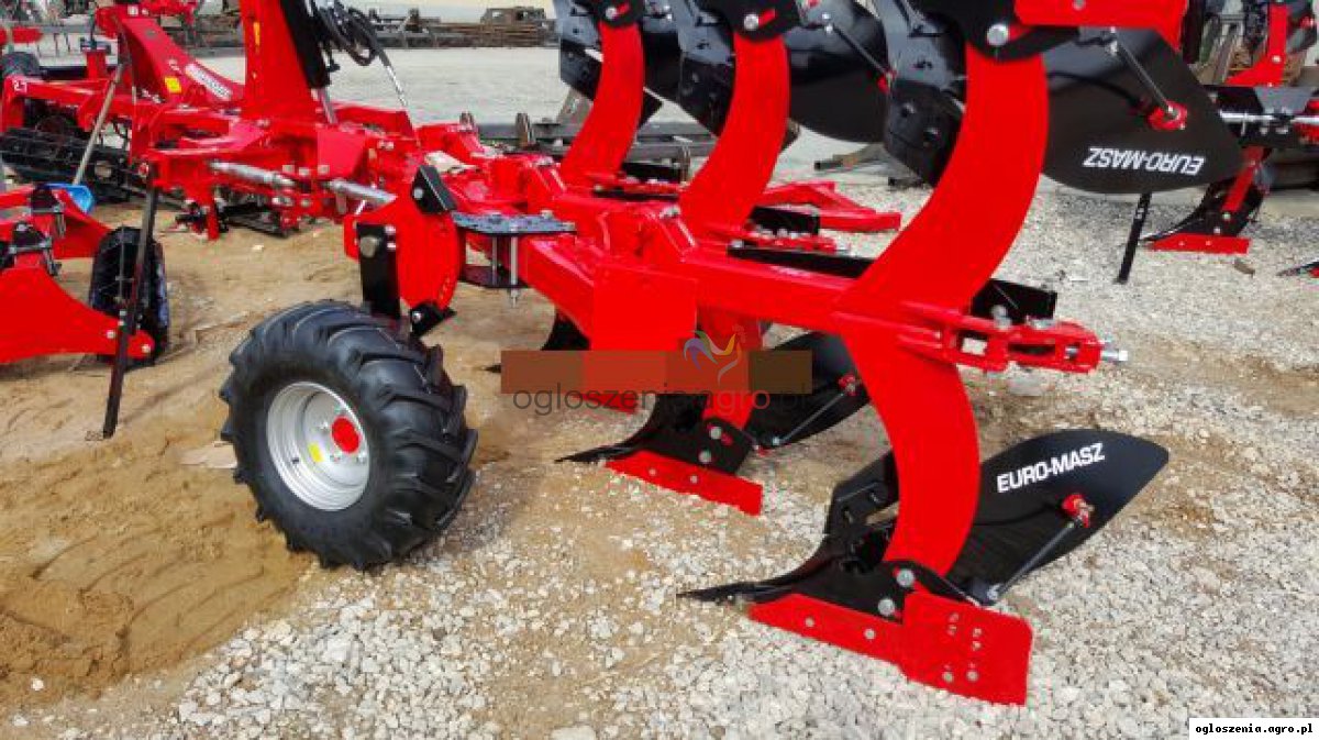 Pług obrotowy obracalny 4 skibowy obrotowy Euro-masz resorowy dostępny fabrycznie nowy -zabezpieczenie resorowe Bellota - rama 120x120x8 mm - automatyczna belka zaczepowa - szerokość skiby regulowana 32, 36 , 40 , 44 cm - wysokość ramy 76 cm - rozstaw korpusów 85 cm - lemiesze z dłutami - odkładnice długie - lemiesze typu Kverneland 18 " - elementy robocze ze stali borowej hartowanej - koło podporowe gumowe z regulacją głębokości pracy - masa 1750 kg - regulacja kąta pracy - regulacja pierwszej skiby - zapotrzebowanie mocy od 90 KM Dodatkowo - korpus przedpłużny - odkładnice ażurowe - wersja + - krój tarczowy - siłownik liniowania - kostka pamięci do wersji z siłownikiem liniowania - rozstaw korpusów 100 cm - wzmocnienie resora 2 pióra