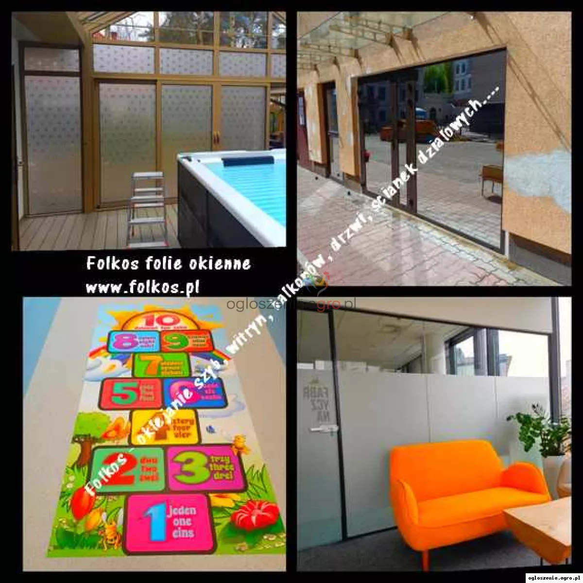 Folie dekoracyjne -Oklejamy okna, drzwi, witryny, ścianki biurowe- sprzedaż, montaż Folkos folie