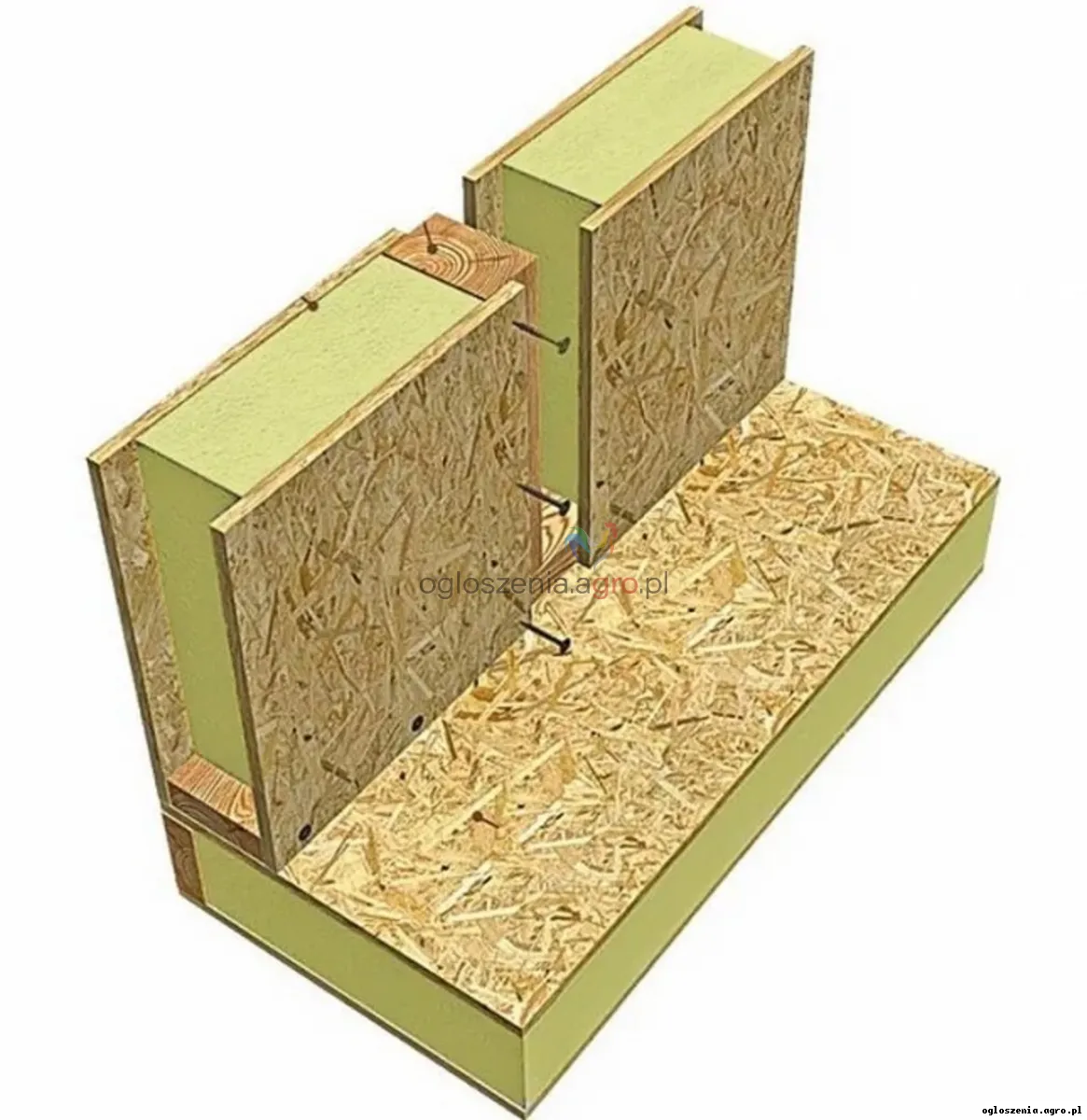 Paneli SIP o grubości łącznej 174 mm (2 x OSB 12 mm + styropian EPS80 150 mm).