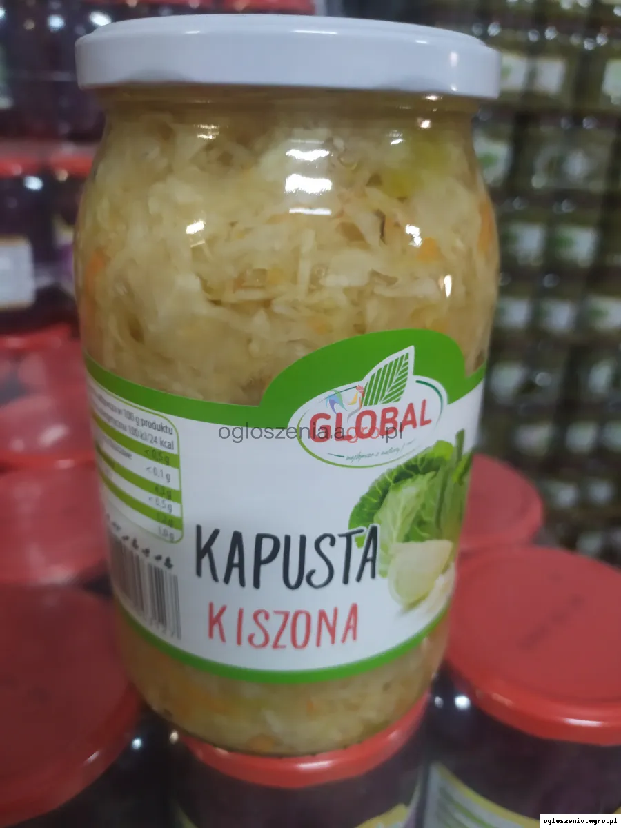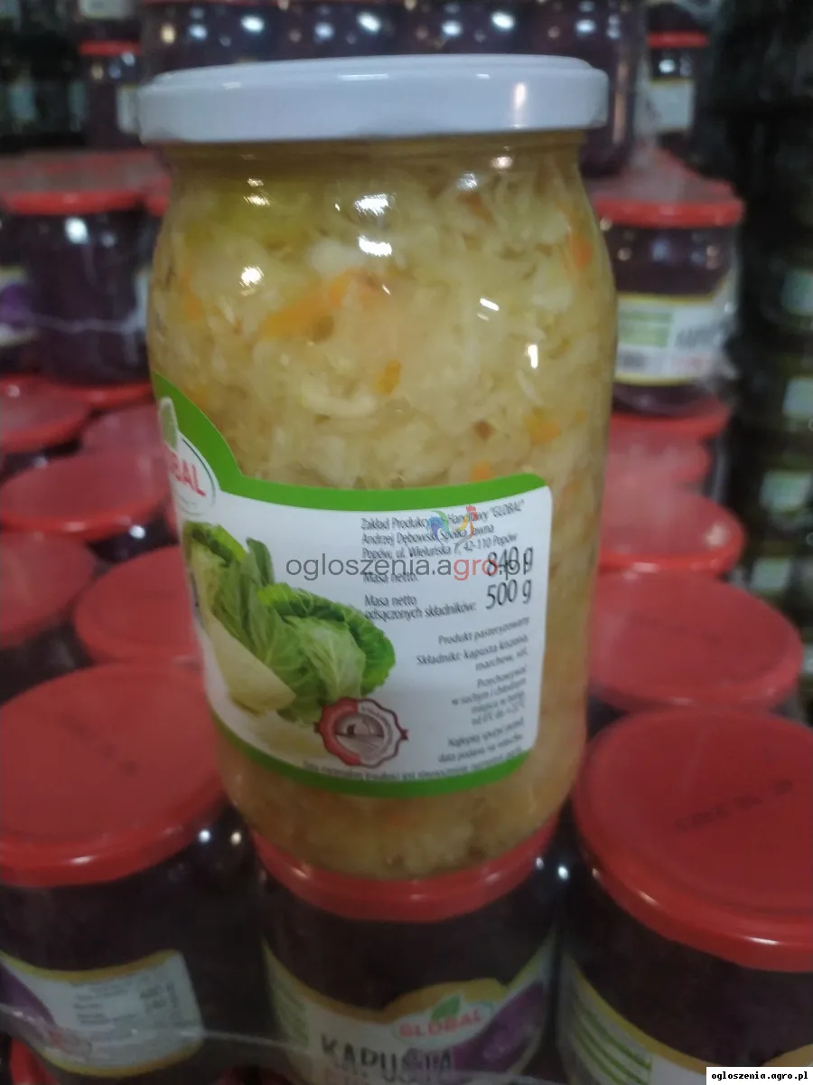 Producent Kiszonek sprzeda hurtowo kapustę kiszoną w słoiku szklanym , sprzedaż na zgrzewki w zgrzewce jest 8 sztuk cena za sztukę 2,99 PLN , transport Gratis