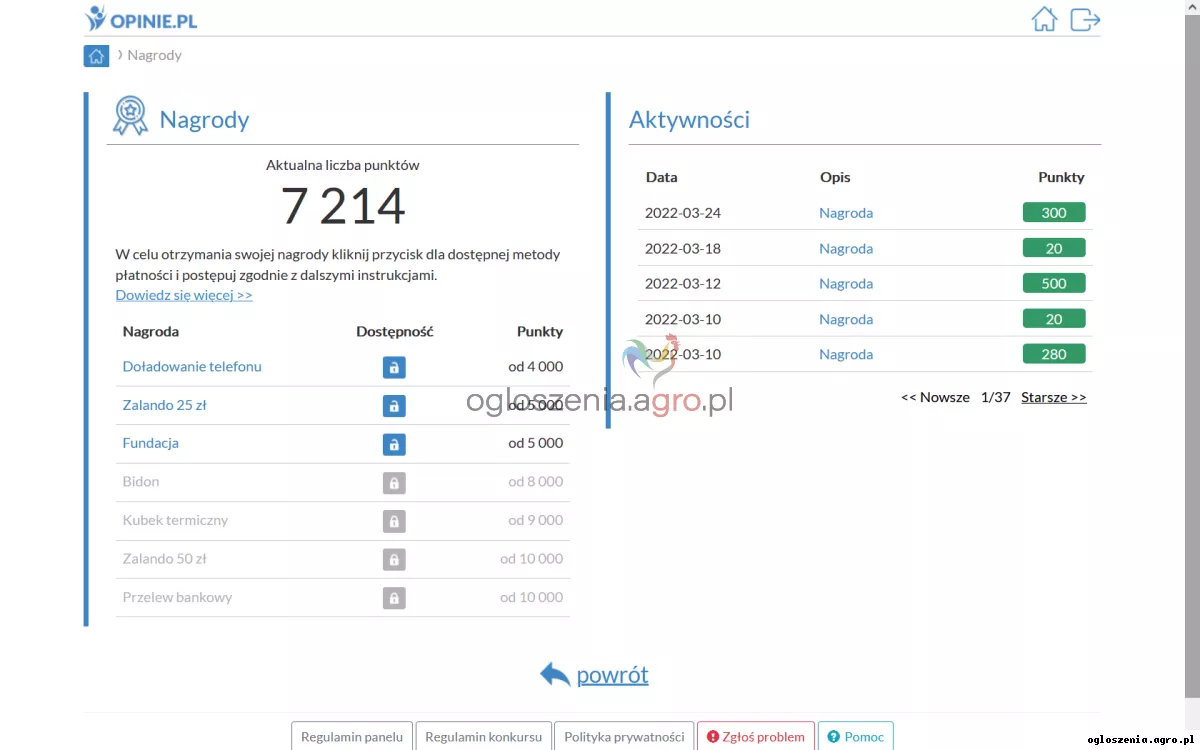 Na stronie mogą zarejestrować się osoby w wieku od 15 do 75 lat. Zdobyte punkty możemy w łatwy sposób wymienić na nagrody: