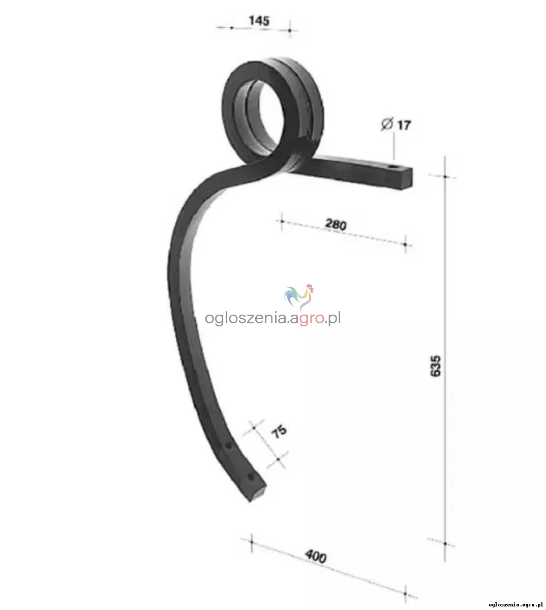 Ząb sprężynowy (ślimak) prawy. lewy 35x35mm do agregatu